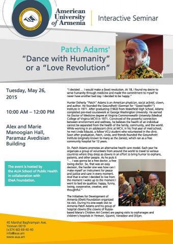 The Initiatives for Development of Armenia (IDeA) Foundation organized his visit. During his one-week visit to Armenia Patch Adams and his group of hospital clowns (the clowns of Russia-based Maria’s Children Art Center) are paying visits to orphanages and children’s hospitals in Yerevan, Gyumri, Vanadzor and Dilijan.