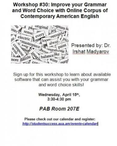 Sign up for this workshop to learn about available software that can assist you with your grammar and word choice skills!